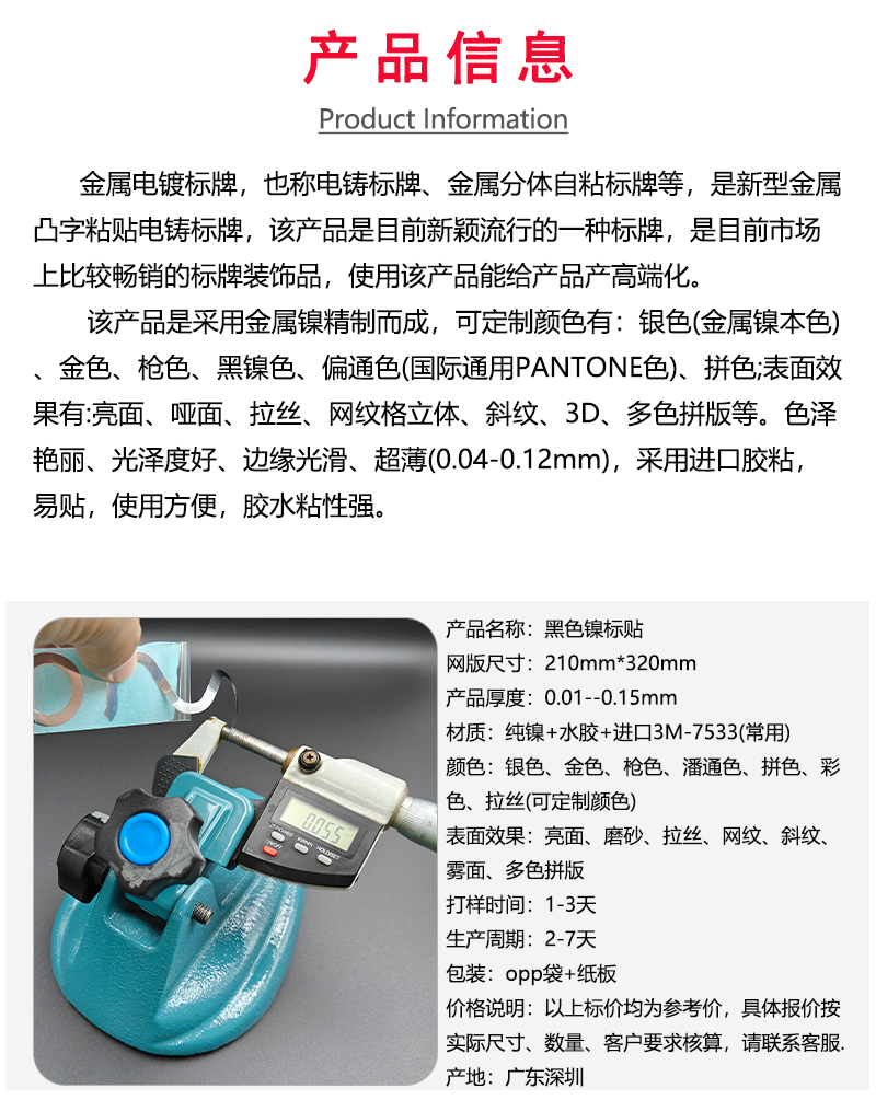 55mm 寬度:15mm 厚度:0.06mm 工藝: 電鑄 表面效果:磨砂 顏色:黑色