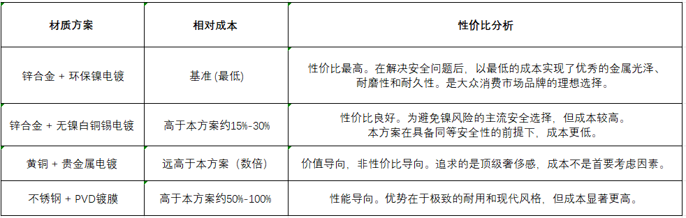 免責聲明: 本方案完全基于您所提出的“鎳材質(zhì)經(jīng)過環(huán)保驗證,無過敏風險”這一核心前提。在實際應用中,建議務必向終端品牌方清晰傳達并提供相應的環(huán)保認證文件,以確保信息透明和商業(yè)合規(guī)。