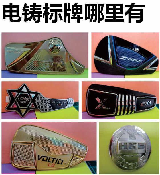 電鑄標牌是采用電化學的方法,在制有掩膜圖文的導體胎膜上快速 沉積金屬,構成金屬的圖文薄片,將金屬薄片從胎膜上分離后,覆以不 干膠作為黏結層,即制成電鑄標牌。電鑄標配廣泛應用于適用于各種家用電器,電腦顯示器,鼠標,音響,家具,防盜門,玻璃制品,手機塑料殼,手機PU套,不銹鋼杯,皮帶口,手機,摩托車,禮品盒,鐵件,鋼琴,吉他,酒盒等工藝品上。