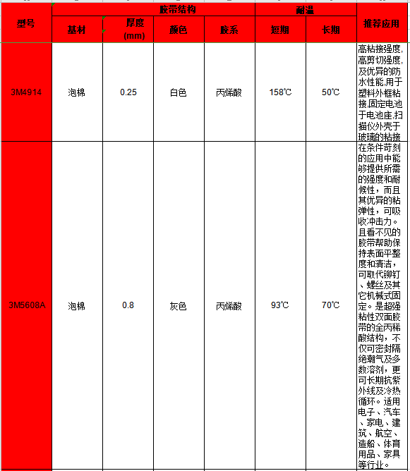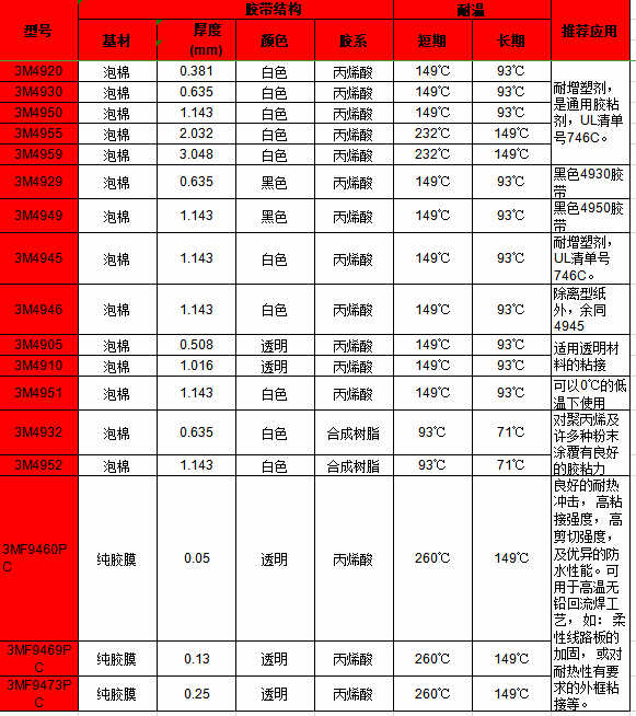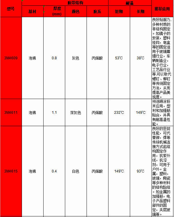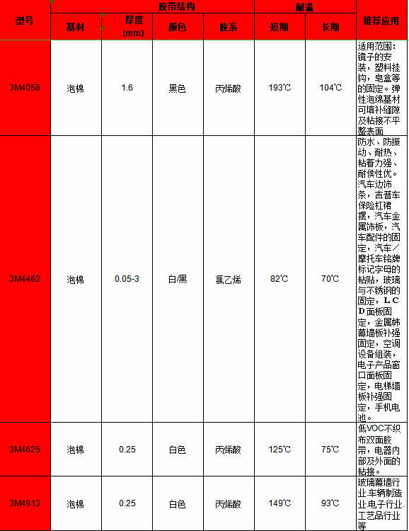 (以上3M膠帶依次為:3M4056、3M4462、3M4625、3M4913相關介紹)