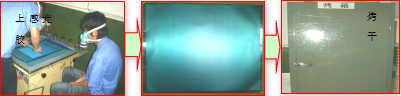 3.把PR蘭油攪拌均勻,倒在印刷網版上,然后雙手握住刮刀,以60~70度的角度,把蘭油均勻的印刷在不銹鋼板上。