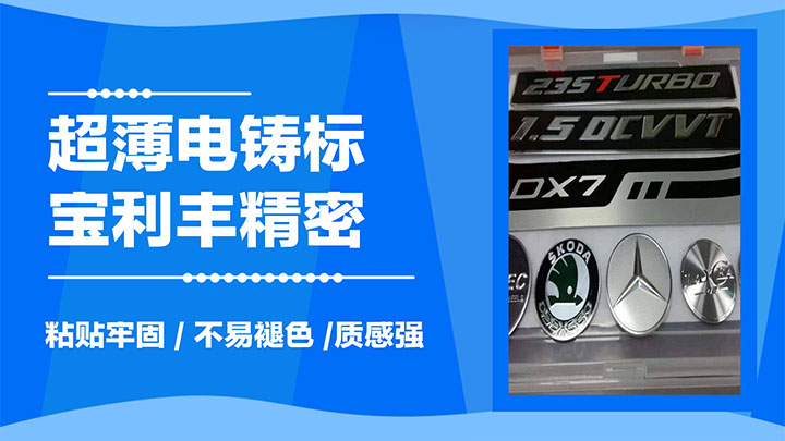 寶利豐生產(chǎn)的鎳標(biāo)客戶(hù)群體主要應(yīng)用于:數(shù)碼電子、工藝禮品、企業(yè)logo、汽車(chē)鑰匙、高爾夫球桿等等,定位中高端金屬商標(biāo)的制作生產(chǎn)與銷(xiāo)售。